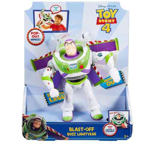 A végtelenbe és tovább.. A híres mondat, mely az összes Toy Story rajongónak ismerős lehet. Nem más mondta ezt, mint Buzz Lightyear, aki a filmsorozatban eleinte Woody ellenfele volt, hiszen mindketten Andy kedvencei akartak lenni. Persze a végén már jóba lettek, és együtt rengeteg izgalmas kalandban van részük, melyek szórakoztatják a nézőket. Buzz figurája gombnyomásra kinyitja szárnyait, melyekkel repülni tud, de közben hangot is ad, valamint még fény effektekre is képes, akárcsak a filmbeli énje. Kiváló minőségének köszönhetően sokáig lehet majd gyermeked játszótársa.