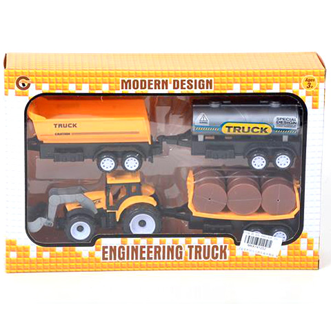 Ebben a készletben egyetlen traktor található, három különféle utánfutóval, így a gyerekek kedvükre kombinálhatják azt. A traktor mint a legtöbb munkagép sárga és fekete színben pompázik, ráadásul egy homlokrakodóval is fel lett szerelve, így a legkülönfélébb feladatokat is el lehet vele végezni. A három különböző utánfutó között találunk hagyományos platóst, bálaszállítót és egy tartálykocsit. A járgányok a részletgazdag kidolgozásukkal egészen biztos elnyerik a gyerekek tetszését.