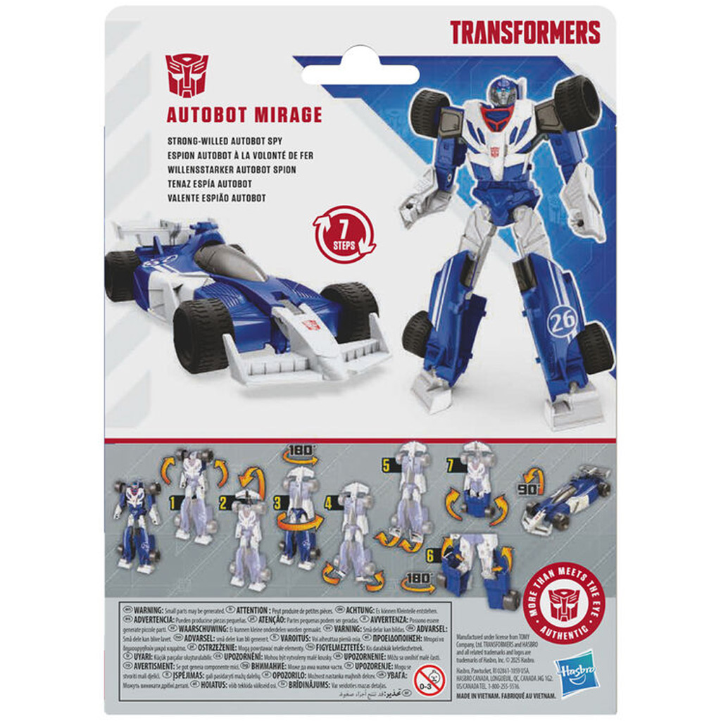 A Transformers Authentics Alpha – Autobot Mirage figurával a gyereked egyetlen mozdulattal átváltoztathatja kedvenc karakterét menő robottá vagy szélsebes versenyautóvá! A figura 2 az 1-ben kialakításának köszönhetően egyaránt izgalmas játékélményt nyújt azoknak, akik a járműveket szeretik, és azoknak is, akik az akcióhősökért rajonganak. Az átalakítás mindössze 7 egyszerű lépésből áll, így a kisebbek is könnyedén boldogulnak vele – ez pedig nemcsak sikerélményt, hanem kreatív játékot is garantál.