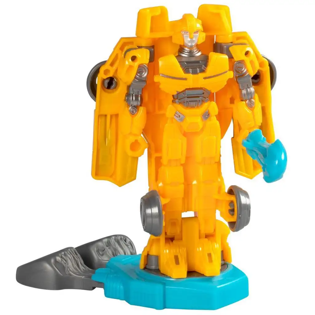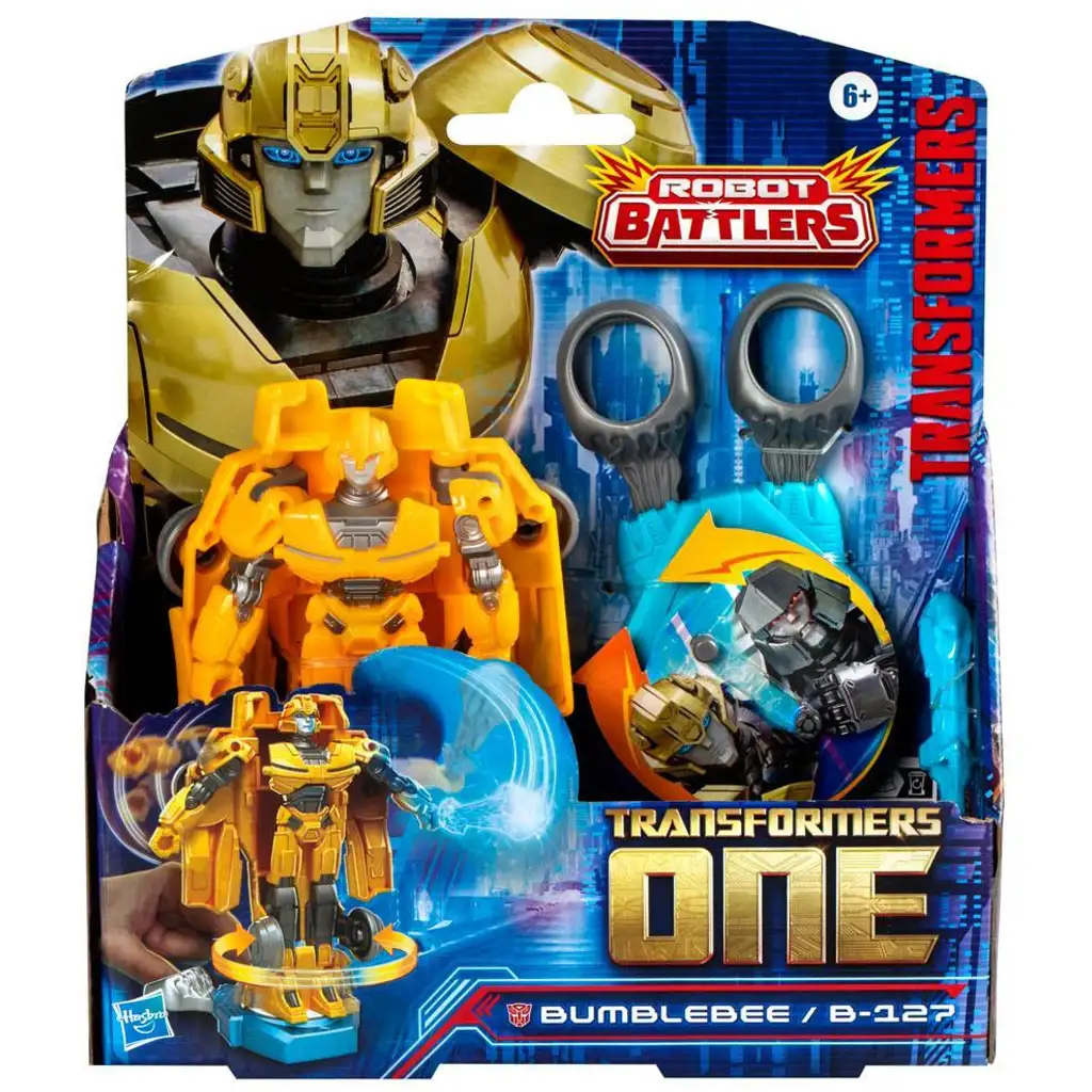 Helyezd az akciófigurát a Battle Base-re, és csúsztasd el a ujjal húzható slotokat, hogy látványos akciómozdulatokat végezhess! A figura mozgatható fejjel, karokkal és lábakkal rendelkezik, amelyek lehetővé teszik a fantasztikus akciós pózokat. A csomag tartalmaz egy Battle Base-t és egy kardot, amely robot módban rögzíthető. Ez a Robot Battlers akciófigura az ikonikus Bumblebee karakter alapján készült, akit a Transformers One film ihletett.