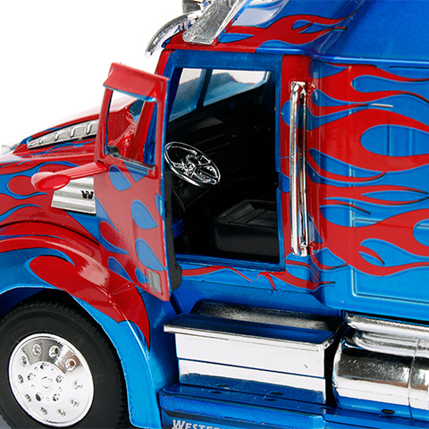 Optimus fővezért egyetlen Transformers rajongó gyereknek sem kell bemutatni, hiszen ő az Autobotok vezetője és talán a legnagyobb harcos is egész Cybertronon. Ez a vagány csaknem húsz centis kamion ugyan nem képes robottá alakulni, cserében olyan elképesztően aprólékos kidolgozást kapott, hogy egy az egyben úgy néz ki, mint a filmekben, sőt még a klasszikus kék színű festés és a vörös lángok sem hiányozhatnak róla. A kamion ajtaja ráadásul nyitható is, így a gyerekek megcsodálhatják a vezetőfülke belsejét.
