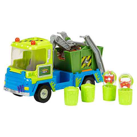 Az undi kukabúvár figurákat a trükkös konténerszállítóval gyűjtheted össze egy kupacba, melynek konténerében egyszerre többen is elférnek. A begyűjtött figurák azonban ravaszak, és egy libikókát használnak kilövőként, hogy menekülni tudjanak. Használd a kocsi különleges funkcióit a játék során, és máris indulhat a kalandos utazás a Trash Pack kukabúvárokkal!