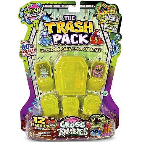 Gyarapítsd rothadó csapatodat földalatti figurákkal! A Trash Pack Kukabúvár Zombi készletek a gyerekek számára újabb rémisztő karaktereket rejtenek, melyeket stílusosan koporsó alakú, zöld színű tárolókban gyűjtögethetnek. A tizenkét kis méretű Kukabúvár Zombi figura talán tartalmazza a ritka, bolyhos vagy a világító Zombikat is, melyekkel még érdekesebb a játék. A koporsó alakú tárolókban remek helye lesz a Trash Pack Zombiknak!