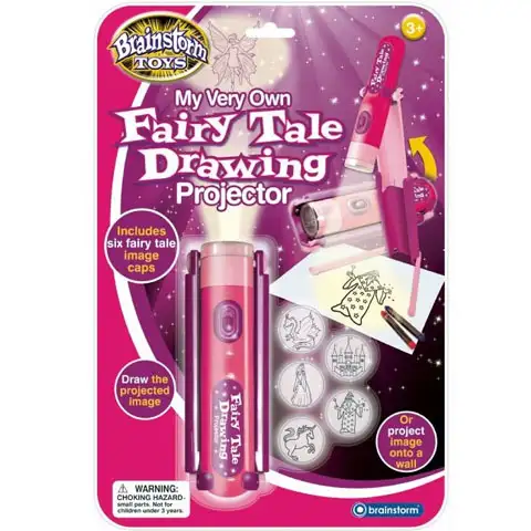 Egy egyszerű zseblámpa is nagyon jó játék a gyerekek számára, és biztonságérzetet is ad, ha van egy lámpa az ágy mellett, ha netán felébredne a gyerek a sötétben. Ez a lámpa azonban különleges tulajdonságokkal is rendelkezik, hiszen az izzó elé egyszerűen egy plusz lencsét illeszthetünk, amint a tündérmesék jól ismert képei láthatóak. Így ha a lámpával egy sima falra világítunk jól kivehető a varázsló vagy épp a mesebeli kastély mintázata. A lámpához egy könnyen összeszerelhető állvány is tartozik, amivel egy rajzlapra vetíthetjük a képet, ami egy ceruzával körülrajzolhatunk, és máris kész egy csodaszép rajz, amit el is kezdhetsz kiszínezni.