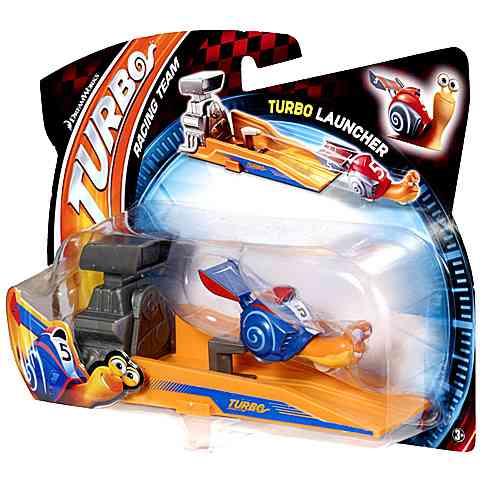 Minden versenycsiga álma, hogy olyan sebességre tegyen szert, mint a mese főszereplője, Turbó. A nagy és veszélyes álmokat dédelgető kerti csigát most Te pörgetheted fel hihetetlen sebességre, hiszen a játékszett tartalmaz egy kilövőt, mellyel bármelyik versenycsigát kilőheted. Turbó egy véletlen balesetnek köszönhetően speciális képességekre tett szert, amit a versenypályán maximálisan ki is használ.