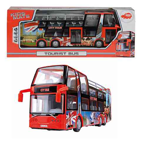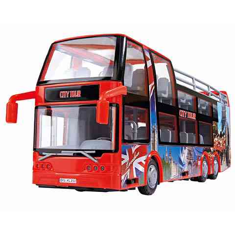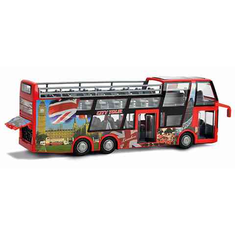 A nagy városokban egyre divatosabb, hogy a külföldi turistákat egy emeletes, és felül nyitott buszon egy városnéző körutazáson vehetnek részt. Ebben a csomagban is pint egy ilyen buszritkaságot találunk, ráadásul pont az emeletes buszok hazájának számító londoni mintázattal. Ez a csodálatos játékbusz lendkerekes meghajtású, és a hátulja, valamint az oldalsó ajtók nyithatóak. A Dickie Toys járművei a gyönyörű és kiemelkedően részletgazdag kidolgozásának köszönhetően teljes mértékben úgy néznek ki mint a valódi járművek.
