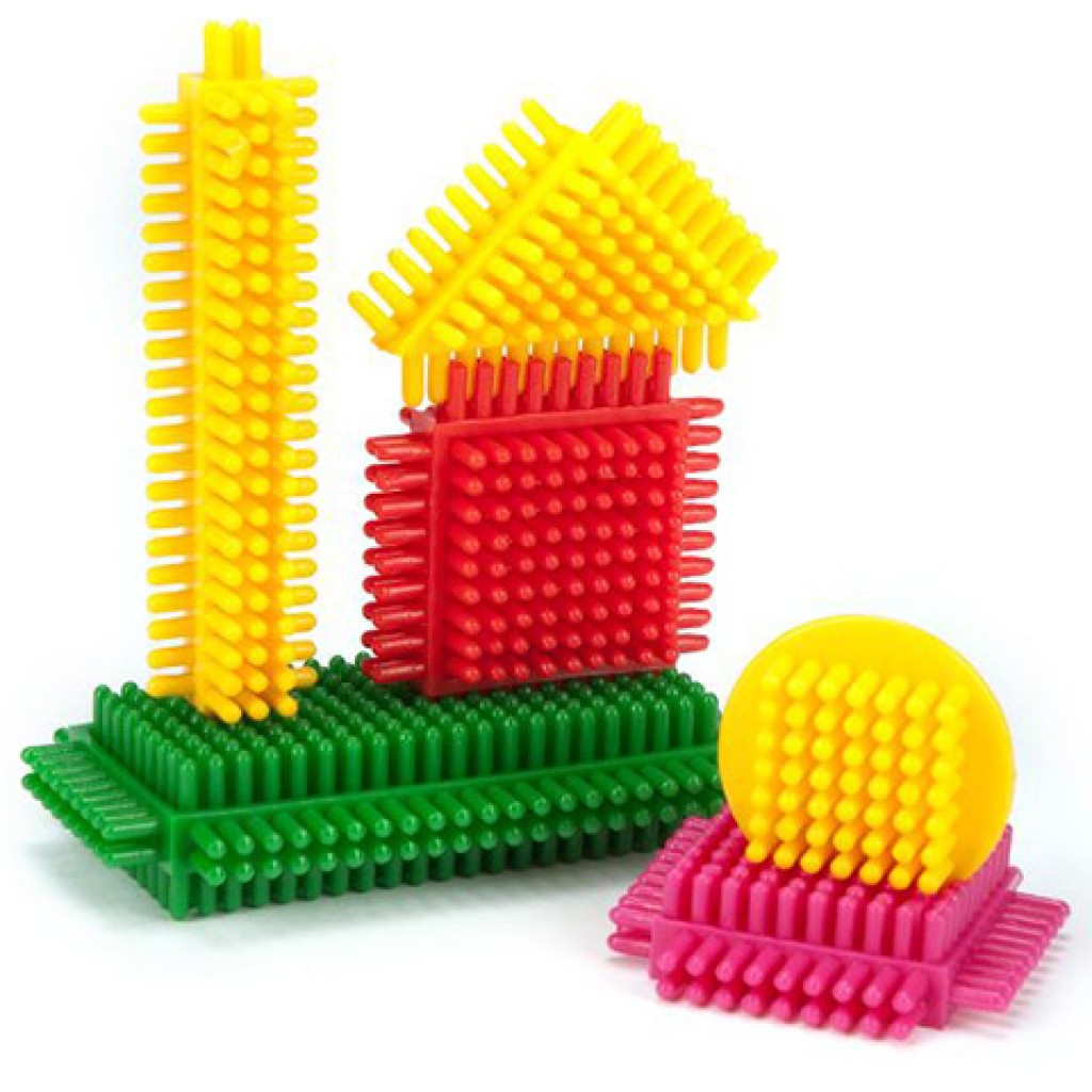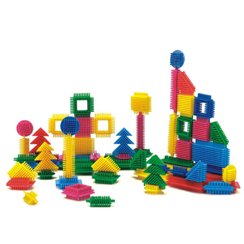 Az összesen 110db alkotóelemet tartalmazó nagy építő szettben különleges alkotóelemekkel találkozhatsz, amelyeknek minden oldala apró tüskékkel ellátott és ennek köszönhetően bármilyen pozícióban képesek egymáshoz rögzülni. A szett tartalma nagyban különbözik a hagyományos építőkockáktól, mégis tökéletesen megfelel az építésre. Az átlátszó műanyag tárolóedényben összesen 110db színes alkotóelemet találhatsz amelyek egytől-egyig 100%-ban káros anyag mentes műanyagból készültek.