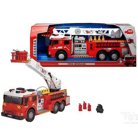 Olts el a tüzet kedvenc játék városodban, ezzel a valóban spriccelő tűzoltó autóval! A szuper tűzoltóautó erre a célra lett kifejlesztve, hiszen kialakítása és funkciói teljesen megegyeznek az eredetivel. Nyomd meg a gombokat a hang- és fényeffektekért, a víztartályból pedig kezd el pumpálni a vizet, hogy elinduljon a tűzoltáshoz szükséges víz a slagon keresztül.