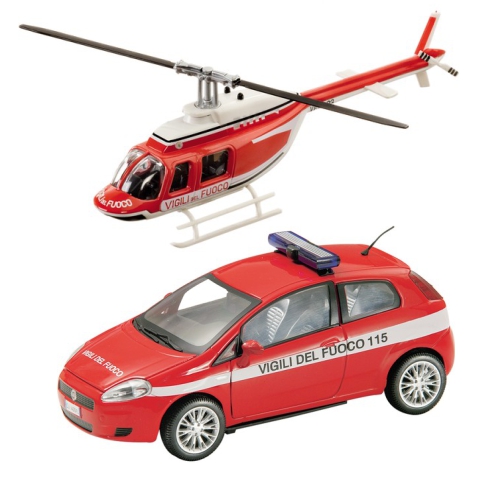 Ez a fantasztikus szett egy rendkívül részletgazdagon kidolgozott helikoptert és a Fiat Bravo tökéletesen kidolgozott fém modelljét tartalmazza 1/43-as méretarányban.