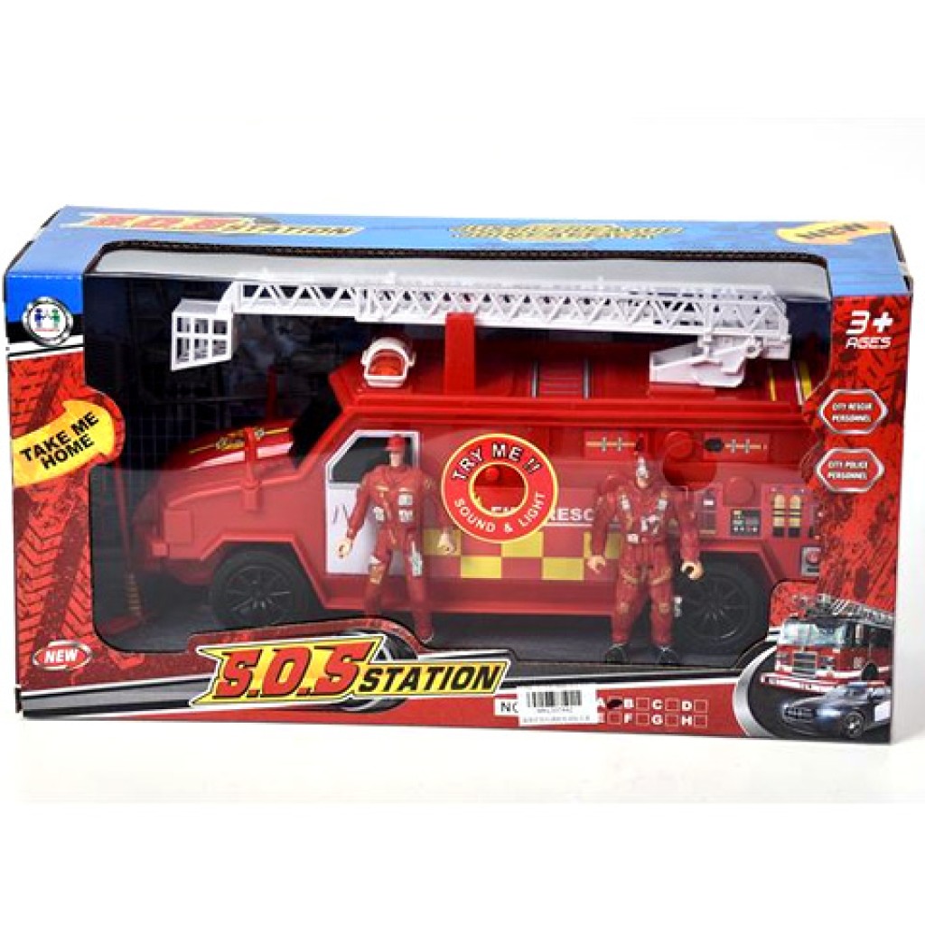 Tűzoltóautó fénnyel, hanggal és figurákkal játékszett