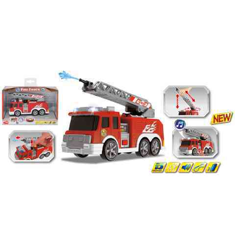 Tűz ütött ki a játékvárosban! Gyorsan fogd ezt a tűzoltó kocsit és siess a helyszínre! Kapcsold be a villogót, és a szirénát hogy mindenki félre tudjon állni! A létrát húzd ki, és kezd meg a locsolást!