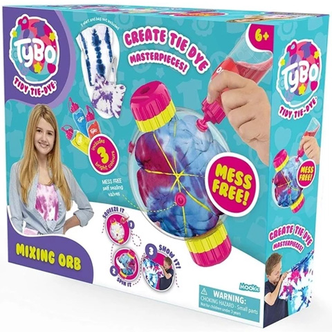 A Tybo kézi batikoló készlete azoknak a kislányoknak való, akik szeretik a divatos és egyedi holmikat, hiszen ezzel a készlettel a saját egyéniségének megfelelő cuccokra t készíthetnek. Ennek a kreatív készletnek a használatával nem hagysz magad után rendetlenséget, hiszen ez egy könnyen és tisztán használható a játék. A festeni kívánt ruhadarabot helyezd a gömbbe, majd a nyomd bele a kiválasztott szint vagy színeket és jöhet egy kis rázás. A szabadalmaztatott egyirányú szeleprendszernek köszönhetően, a festék nem fog kifolyni, biztonságosan használható és amint megszáradt, máris fel lehet venni.