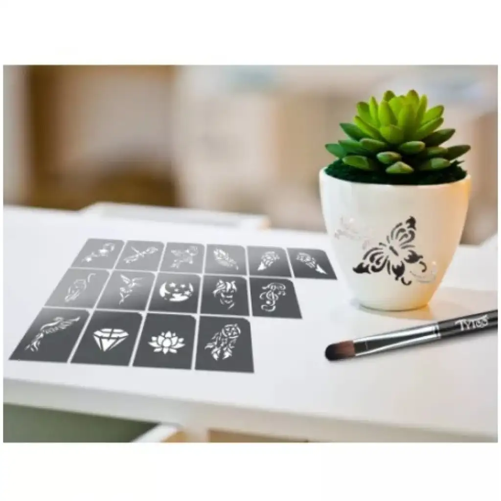 A TyToo nagyszerű csillámtetoválás szettjeivel megjelenésünk könnyen feldobható egy-egy jól kiválasztott mintával. Ez a csomag 15db öntapadós sablont tartalmaz, melyek mindegyike kimondottan lányok számára lett kitalálva. A minták közt olyan ábrák találhatóak, mint virágok, szárny, ékkő, hangjegy és egyéb látványos sablonok. A sablonok könnyen felragaszthatóak a bőrre és remekül megtapadnak ott a csillámtetkó elkészítéséig, majd nyom nélkül eltávolíthatóak. Ragasztó anyaguk bőrbarát. A szett kizárólag az öntapadós sablonokat tartalmazza, a csillámtetkó elkészítéséhez szükséges további kiegészítők mind külön kaphatóak!