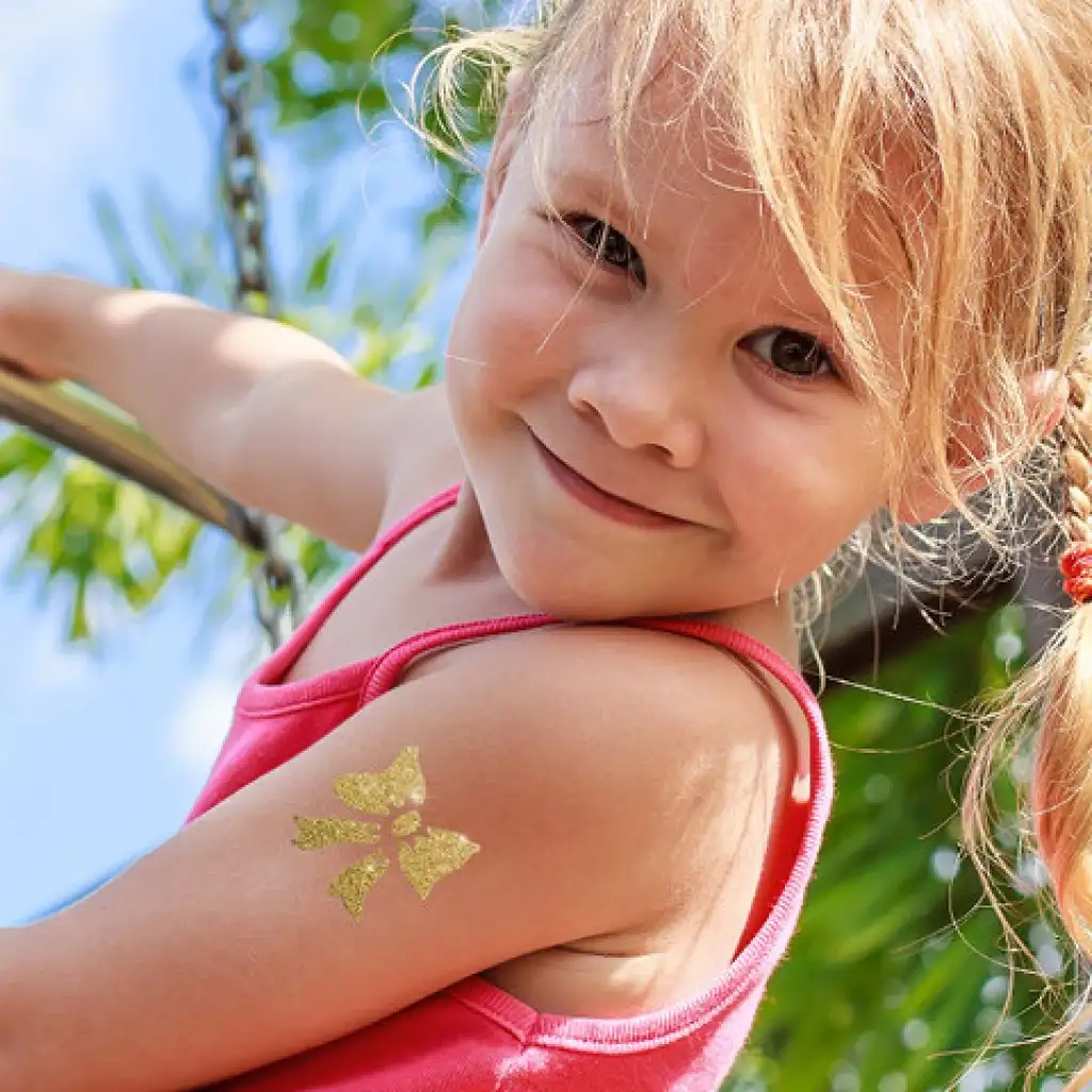 Rendkívül izgalmas mintákat készíthetnek arany színben tetoválásként a gyerekek saját bőrükre, hiszen ez a TyToo kiegészítő három tégely csillámport is tartalmaz! A szettben mindhárom tégely ugyanazzal a színnel töltött, így nem kell attól tartaniuk hogy hamar elfogyna. A csillámpor a TyToo tetoválás ragasztóval vihető fel a bőrre, majd a csillámport beleszórva az akár hetekig is a bőr felületén maradhat. A kislányok imádni fogják a a látványos színt, a kiegészítő szettel akár 60-80 csillámtetkó is készíthető.