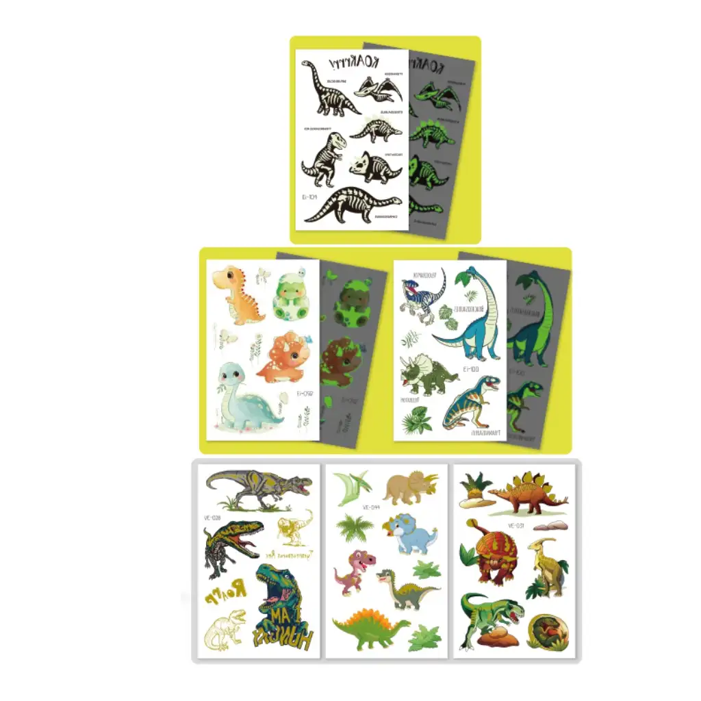 Lépj be a dinoszauruszok izgalmas világába ezzel a 40 darabos Dinoszauruszos matrica tetkó szettel, tökéletesen alkalmas minden kis dinórajongónak! Ezek az ideiglenes tetoválások tökéletes választást jelentenek a dinók iránti szeretet kifejezésére. A szett 6 ívet tartalmaz, melyekben különböző méretű és fajtájú dinoszauruszok találhatók: nagyok, kicsik, baby dínók, sőt még világítós dinók és T-Rex is!