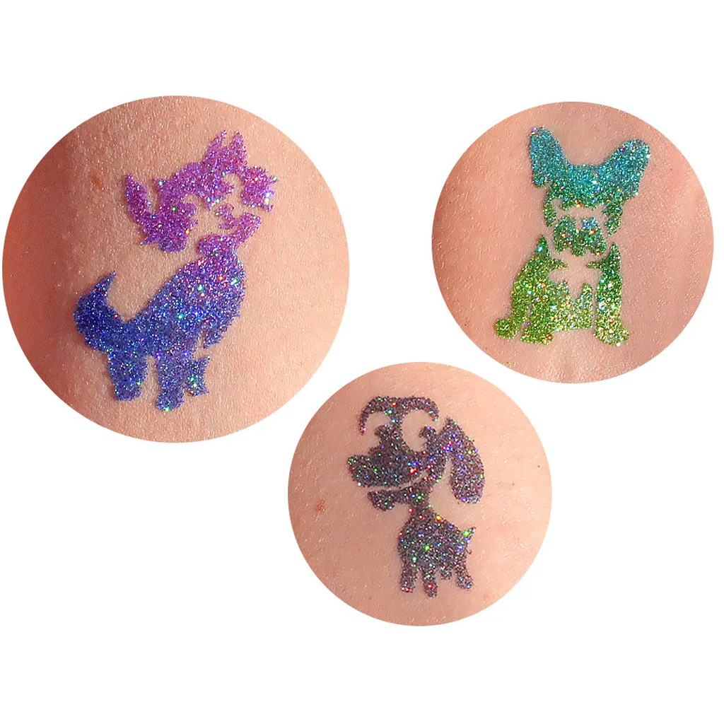 Ha a gyermeked imádja az állatokat, különösen a kutyákat és macskákat, akkor ez a TyToo csillámtetoválás sablon szett telitalálat lesz számára! A 27 darabos sablongyűjtemény változatos, aranyos és játékos kutyusos-cicás mintákat tartalmaz, melyekkel könnyen és gyorsan készíthetők bámulatos csillámtetkók – akár otthon, akár egy szülinapi zsúron.