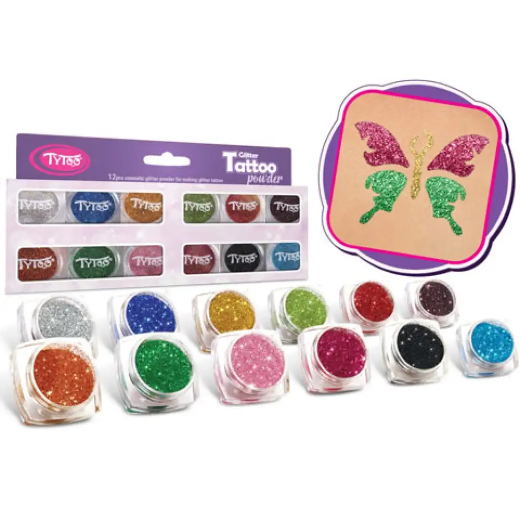 Egy különleges csillámpor szettet szerezhetsz be most otthonra, mely rengeteg csillámtetoválás elkészítésére alkalmas lesz. A szettben összesen 12 csodaszép, csillámló szín található meg, melyek apró, hatszögletű alakot kaptak, így téve lehetővé, hogy a tetoválás elkészítésekor az egész felület tökéletesen fedve legyen. Élénk színük tökéletesen élénk marad még hosszú idő után is, tégelyes kiszerelése pedig lehetővé teszi, hogy egyszerűen fel lehessen venni ecsettel, így könnyen kezelhető. Keresd kínálatunkban a mintákat és ragasztót is, és már kezdődhet is a tetoválás.