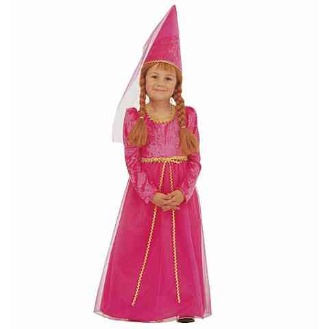 Igazi középkori szépség lehetsz ebben a csodálatos jelmezben, melynek része az arany színű díszítéssel ellátott ruha és fejfedő is. Csak bújj bele a hercegnő jelmezedbe, és máris indulhatsz a farsangi jelmezbálra, hogy elkápráztasd a többieket. A rózsaszín ruha tökéletes megjelenést biztosít a kis hercegnőknek!