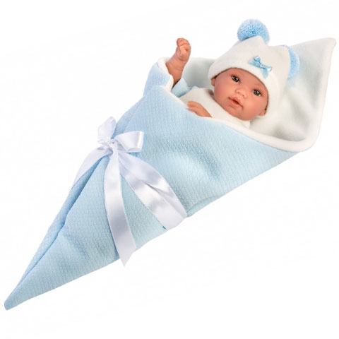 Llorens: Újszülött sírós fiú fagyi baba tölcsér alakú pólyában 36cm