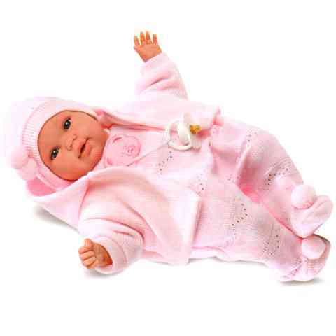 Újszülött síró baba rózsaszín macis ruhában 36cm video
