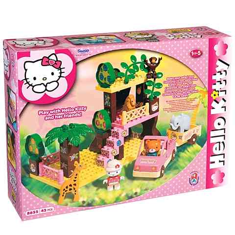 Ismerd meg a dzsungel állatait a szórakoztató játék közben! A számos állatfigura mellett a szett része Hello Kitty is, akivel dzsungelkalandra indulhatsz. Az építőelemekkel rendkívül kreatív játék veheti kezdetét, melyben a kézügyesség is fejlődik majd. Az építőelemekkel az dzsungel-lak minden részlete a helyére kerülhet, így Hello Kitty és barátai kiválóan szórakozhatnak. Fedezd fel a dzsungelt és kalandozz a szuper járgánnyal!