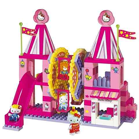 Hatalmas kaland vár Hello Kitty-re és barátaira, melyben természetesen Te is részt vehetsz! A különleges építőkocka szettel felépítheted az igazi vidámparkot, mely a Hello Kitty mesékre jellemző rózsaszín színben tündököl. Ha az építőkockákból elkészült a vidámpark, már csak jegyet kell váltanod a kasszánál, és máris felülhetsz az óriáskerékre, vagy akár a nagy csúszdát is kipróbálhatod. Az építőjáték kiválóan fejleszti a kicsik kreativitását és kézügyességét is egyben.