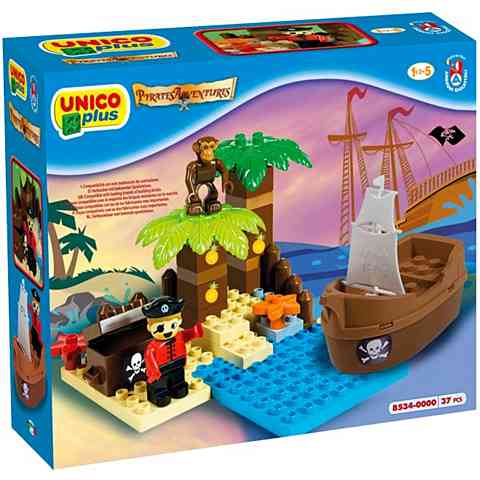 A kalóz kapitány és majma már útra készen állnak, szeretnék elhagyni a szigetet miután megszerezték az értékes kincset. A gyerekek most a saját kis kalózszigetüket építhetik fel az Unico építőkockákból, melyek nagy méretüknél fogva biztonságos játékélményt garantálnak. A szett mindent tartalmaz amire az izgalmas játékhoz szükség lehet, az elemek összeillesztése és szétszedése is egyszerű. A készlet része minden kalóz témájú kiegészítő elem, amelyekkel a gyerekeknek igazán teljes lesz a játékélmény. Pattanj fel a fedélzetre és hajóz e la kincscsel!