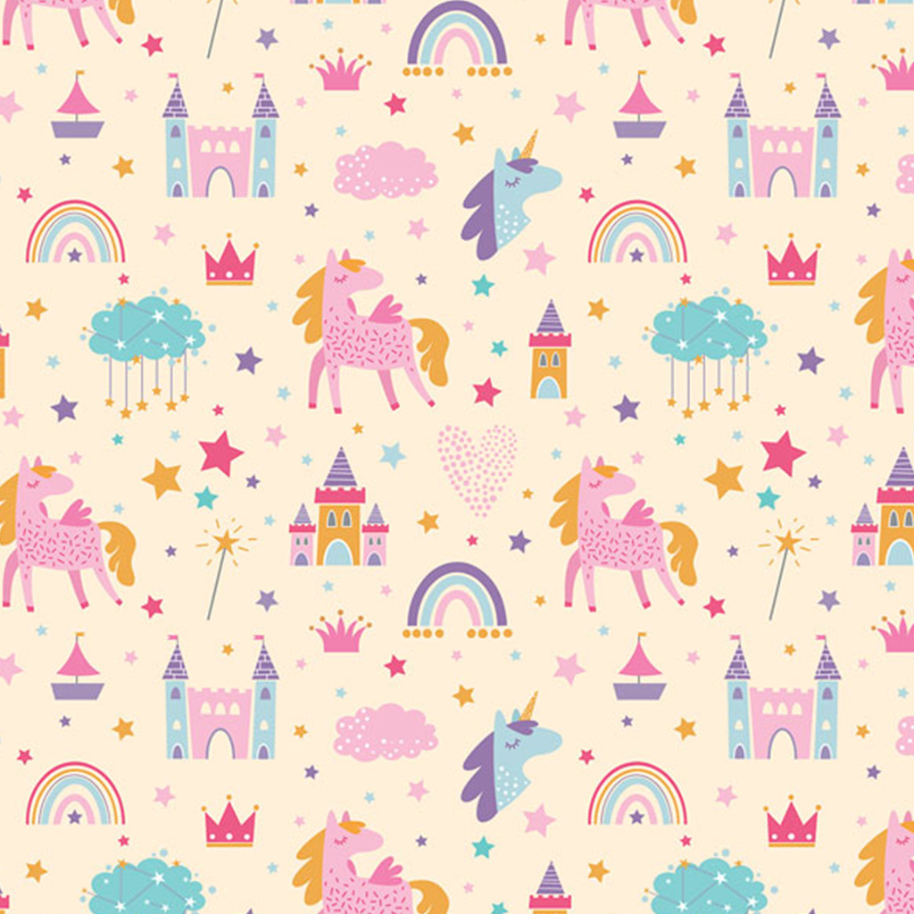 Unikornis, kastély, szivárvány és csillagos mesevilág motívumok