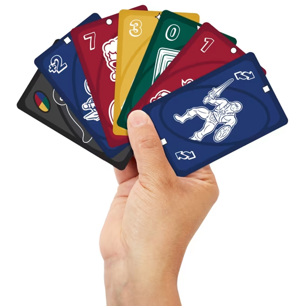 A pakli színei mélyebb, kontrasztosabb tónusokat kaptak, kifejezetten a színtévesztők számára is jól felismerhető piktogramokkal ellátva. A lapokon olyan kedvelt figurák bukkannak fel, mint He-Man, Barbie, Hot Wheels autók, Thomas a gőzmozdony, vagy Scrabble betűlapok – ezáltal a játék nemcsak szórakoztató, de nosztalgikus utazás is a Mattel világában.