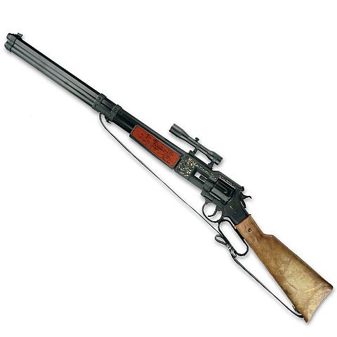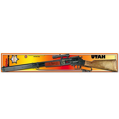 Ez a látványos Utah puska látványosan dekorált és tökéletesen visszaadja a vadnyugati hangulatot, melynek szerves részét képezte a puska. A fegyver távcsővel és vállpánttal is fel van szerelve. A puska 12db-os rózsapatronnal működik, mely egyszerűen és gyorsan betölthető a tárba és biztonságosan használható. Elsütéskor hangos durranás hallatszik és füst gomolyog ki a csőből, akár az igazi fegyverből!