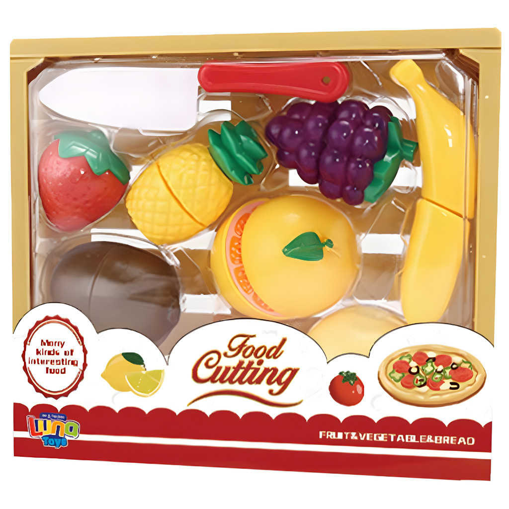 A gyümölcsök, mint a szőlő, kiwi, eper, banán, ananász, körte és citrom, élethűen vannak megtervezve és kivitelezve, így a gyermekek szinte úgy érezhetik, mintha valódi gyümölcsökkel dolgoznának a saját kis konyhájukban. A gyümölcsök középen tépőzárral vannak összeillesztve, és a mellékelt műanyag kés segítségével a gyerekek könnyedén elvághatják őket. Ezáltal a játék egy élethű tapasztalatot nyújt, amely ösztönzi a finommotorikus készségek fejlődését és a szerepjátékot.