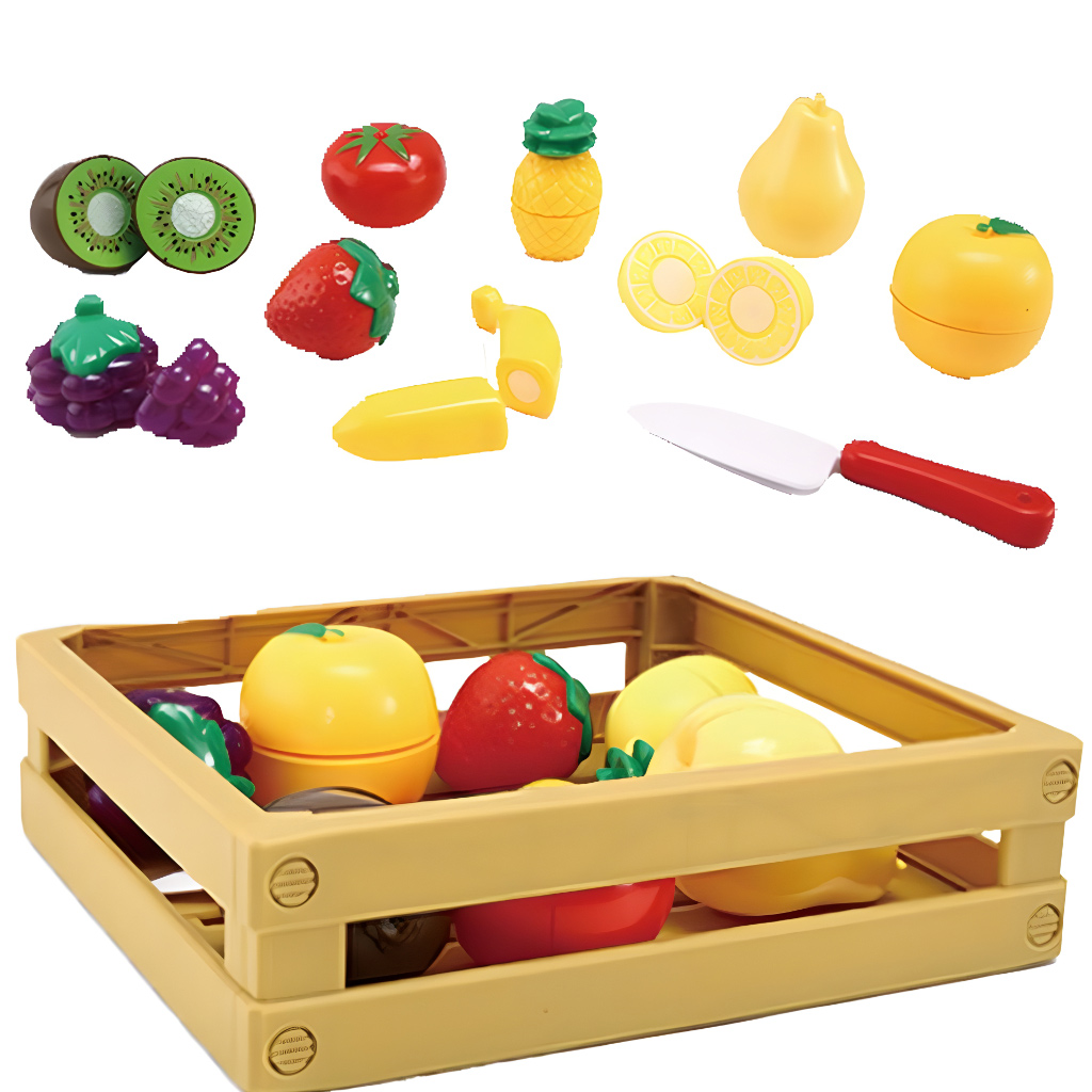 Vágható gyümölcsök 11 db-os szett ládában késselVágható gyümölcsök 11 db-os szett ládában késsel