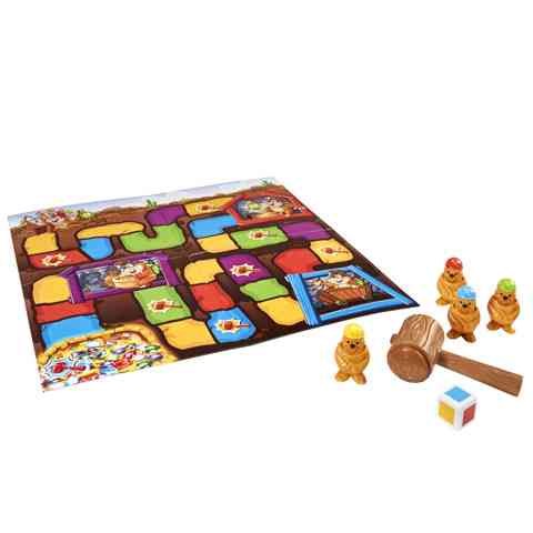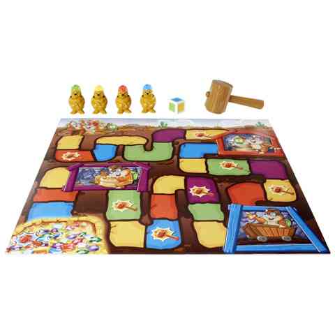 Egy igazi mozgalmas kincskereső társasjáték kicsiknek. A játék lényege egyszerű mert mindenki csak a saját színére léphet a kis vakond figurájával. A lényeg, hogy meg kell keresni a kincset a táblán, ami nem is olyan egyszerű. Az nyer aki először ér a kincshez, de vigyázat mert ha úgy fordul a szerencse akkor valaki jól fejbe koppinthatja a figurádat a készletben található kalapáccsal.