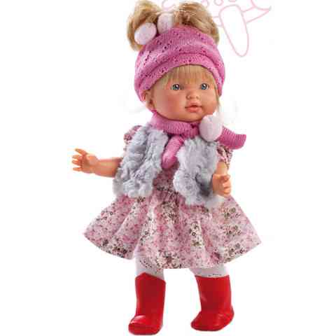 A 28 cm magas Valeria baba igazán divatosan mutat virágos ruhájában, melyhez egy szürke szőrmemellényt, és piros csizmát húzott. Modern, színes szettjét rózsaszín sálja és sapkája dobja fel még jobban. Valeria szőke haja fésülhető, jó minőségű anyagból készült, így gyermeked biztosan örömmel fogja magával vinni mindenhova.