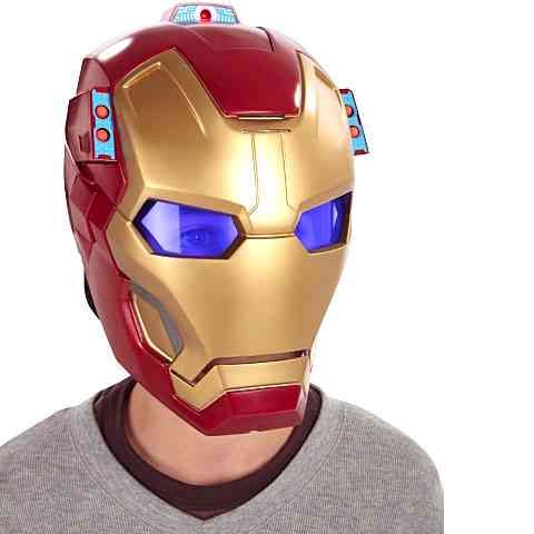 Légy Te magad a Vasember, a Bosszúállók hőse! Tony Stark a Vasember 3 filmben a legütősebb páncélzatot használja, melynek maszkját Te is felpróbálhatod. Nyomd meg a két oldalt a füleknél elhelyezett gombokat, és azonnal hallhatod a harci hangokat, valamint láthatod a lézer fényt! A lézer piros színű célkeresztet vetít előre, mellyel pontosan bemérheted a lövedékek becsapódási helyét.