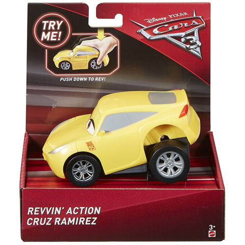 Cruz Ramirez a Verdák 3 mesefilmben komoly ellenfele lesz a címvédő Villám McQueennek a Szelep-kupáért folytatott ádáz küzdelemben. A sárga sportkocsi kitartó és kegyetlenül gyors a versenypályán, ahol gondolkodás nélkül kihasználja a lehetőséget az előzésre. Most te is kipróbálhatod ezt a kisautót otthon, és nem is kell mást tenned, mind az autó hátsó részét lenyomni, ezzel felhúzva a benne rejlő rugót, ami az elengedés pillanatban szinte kilövi az autót, ami végigszáguld az asztalon vagy a padlón.