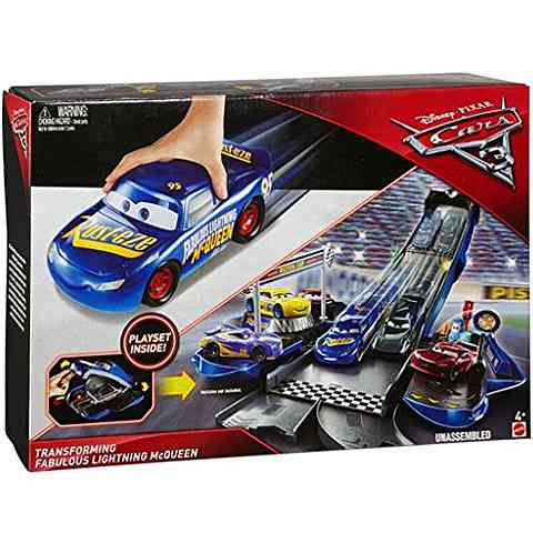 Felkészültél a száguldásra? A kék színű Villám McQueen kocsit szétnyithatod, majd a benne kialakítható pályán máris megkezdődhet a futam. A két sávos versenyszakaszon egyszerre indíthatod kocsijaidat, így hamar kiderül melyik járgánya gyorsabb. A felkészülést a boxba hajtva teheted meg, majd játék után a teljes készleted visszaalakíthatod Villám McQueen kocsivá! A kék Villám McQueen-t a Verdák 3 mesében láthattad.