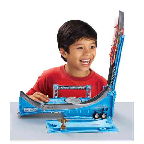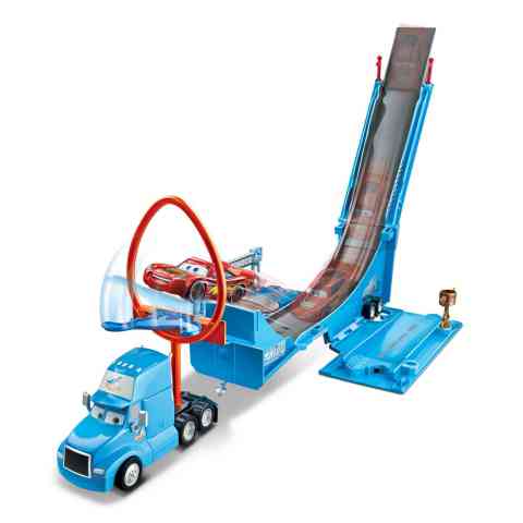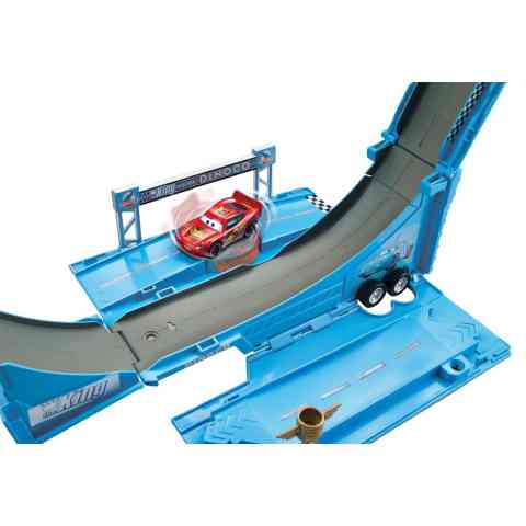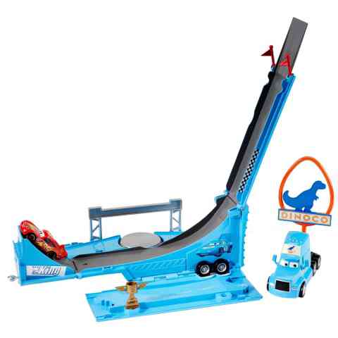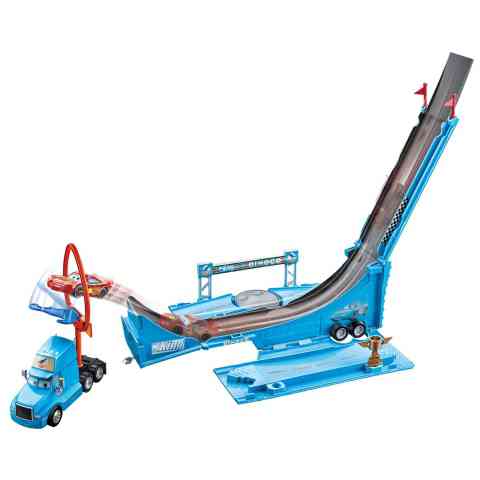 Villám McQueen ezúttal a DINOCO csapat gyakorlópályáján vendégeskedik, ahol a következő versenyre készül. A pálya különlegessége nem más, minthogy egy hatalmas kamion utánfutójából nyitható ki. A kamion pótkocsiját szétnyitva egy óriási rámpát kapsz, amin leszáguldva az a cél, hogy a karikán átrepülj a Verdák 1/55-ös méretarányú kisautóiddal. A pályát összecsukva vontatni is tudod a DINOCO kamionnal. A kisautó külön kapható!