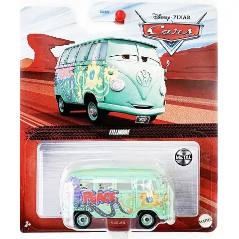 Fillmore egy régi szereplője a Verdák mesefilmeknek, hiszen már az első filmben is találkozhattunk vele, mint a kistelepülés üzemanyag ellátója. Az autófigura alapjául egy klasszikus 1960-as VW kisbusz szolgált ami már az első rész megjelenése idején egy ikonikus járgánynak számított. A kisautó a részletgazdag kidolgozásának, festésének és mintázatának köszönhetően pont úgy néz ki, ahogy a Verdák című Disney mesefilmekben, így a velük való játék vissza adja a mese hangulatát, és felidézi a szereplők legizgalmasabb kalandjait.