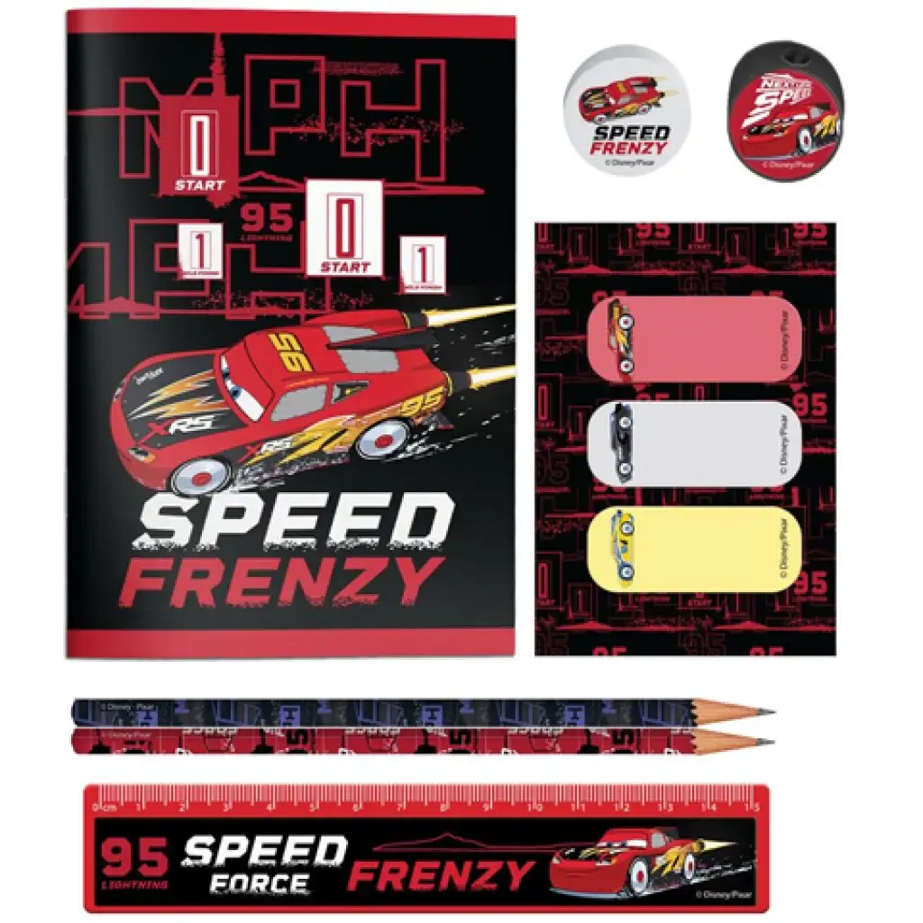 A Verdák az utóbbi idők egyik legsikeresebb olyan Disney meséje, ami első sorban fiú közönségnek szólt, és a kis srácok a mai napig rajonganak 95-ös rajtszámú Villám McQueen autóért, ami számos Szelep-kupa futamot nyert meg. Az írószer csomag az iskolában igen hasznos kiegészítőket is tartalmaz, így a két grafit ceruza mellett radírt és hegyezőt is találunk, hogy a ceruzák mindig használatra készek legyenek, és az esetleges hibákat is azonnal lehessen javítani. Ezen felül vonalzót, egy kis jegyzetfüzetet és egyéb hasznos dolgokat is találni a praktikus PVC tasakban, amit akár tolltartónak is lehet használni.