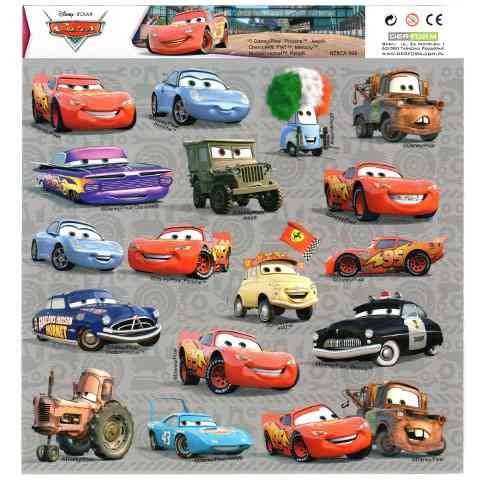 Villám McQueen a verdák című mesefilm főhőse egy utazás során legurult a kamionról, eltévedt, és a távoli kis faluban, Kipufogó-fürdőben kötött ki. Az íven tizenhat matrica található, és a népszerű mesefilm autói kaptak helyet, így Villám McQueen és Kipufogó-fürdő "lakói" díszítik az összes matricát. A matricák természetesen előre körbe vannak vágva, így a gyerekeknek csak le kell szedni az ívről, és máris bárhova felragasztható. A matricákkal egyszerűen jelölheti a saját játékait vagy iskolai felszerelését.
