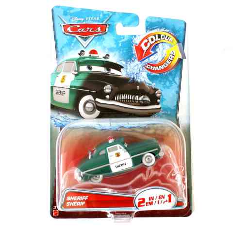 Sheriff Kipufogófürdő városának védelmezője és éber őre. Ő az, aki a kétségbeesett száguldást bemutató Villám McQueen kerekére is bilincset tett. Ez a rendkívül részletgazdagon kidolgozott karakter kisautó tökéletes mása a filmben látható kocsinak és most még egy különlegességet is tartogat a számotokra. Sheriff a meleg hatására feketéről zöld színűre változik át, majd vissza. Ha egy igazán látványos kisautót szeretnél a verdák gyűjteményedbe, akkor Sheriff a tökéletes választás a számodra!