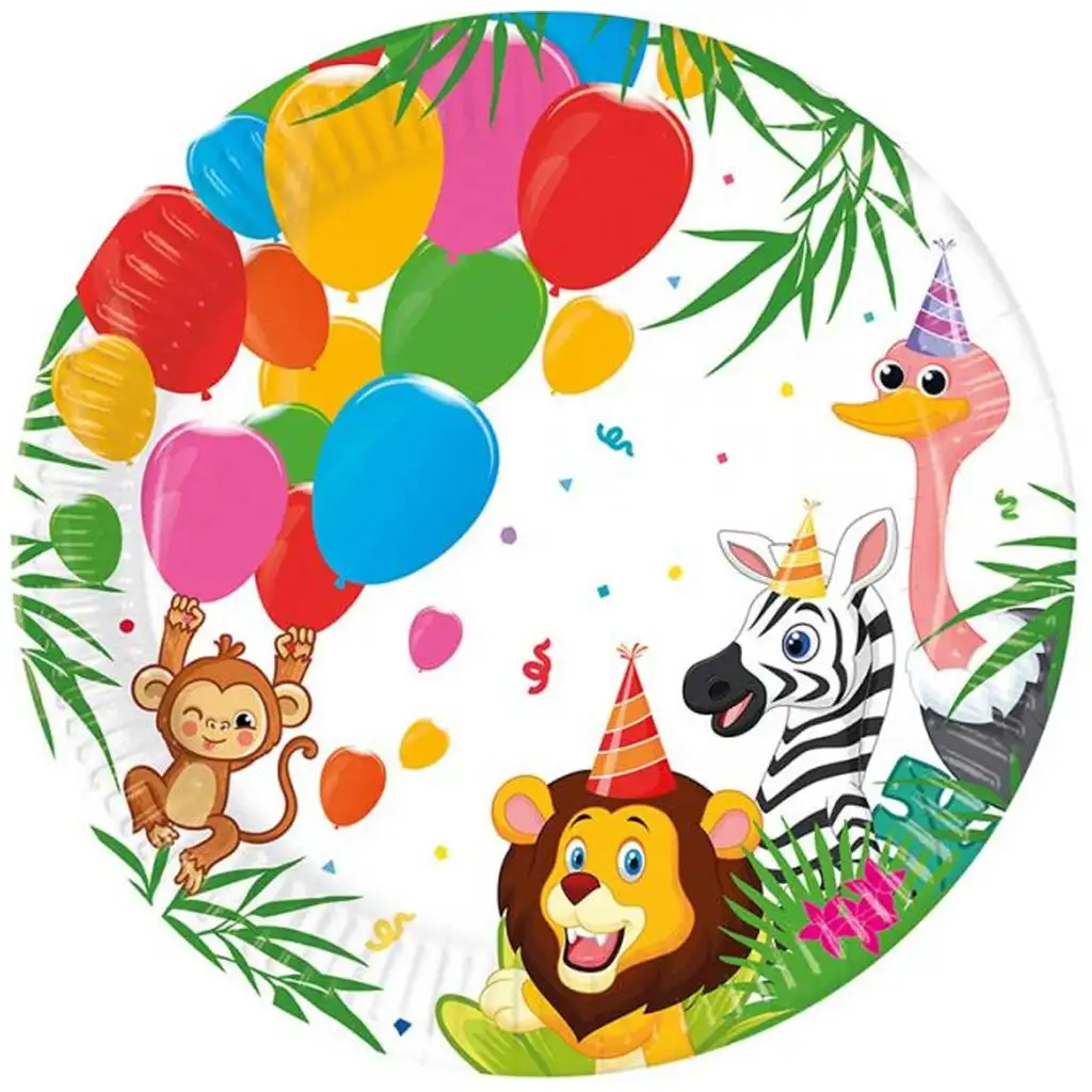 Vidám dzsungel mintás papírtányér 8db-os szett 23cmVidám dzsungel mintás papírtányér 8db-os szett 23cm