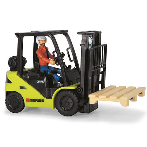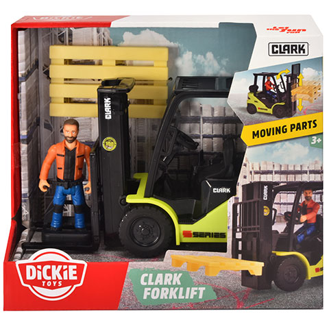 A targoncák nem csak a gyerekeket, hanem nagyon sok felnőttet is lenyűgöznek, különösen, ha a volán mögött egy igazán ügyes raktáros foglal helyet. Ebben a csomagban a gyerekek egy rendkívül részletgazdagon kidolgozott Clark S25 villás targoncát találnak, aminek a villás része mozgatható, így mindenki próbára teheti magát raktáros munkakörben, különösen, hogy a készletben egy raklapot is találunk, amin bátran lehet gyakorolni. A készletben található egy raktáros figura is, mozgatható kezekkel és lábakkal.