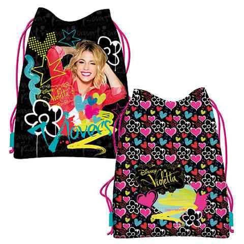 A Disney bájos sorozatsztárja az iskolában használható tornazsákon is feltűnik! A különleges, élénk színekkel mintázott és természetesen Violetta arcképével ellátott tornazsák alkalmas a váltóruha vagy a cipő tárolására, így a gyerekek kényelmesen és stílusosan hordozhatják felszerelésüket.