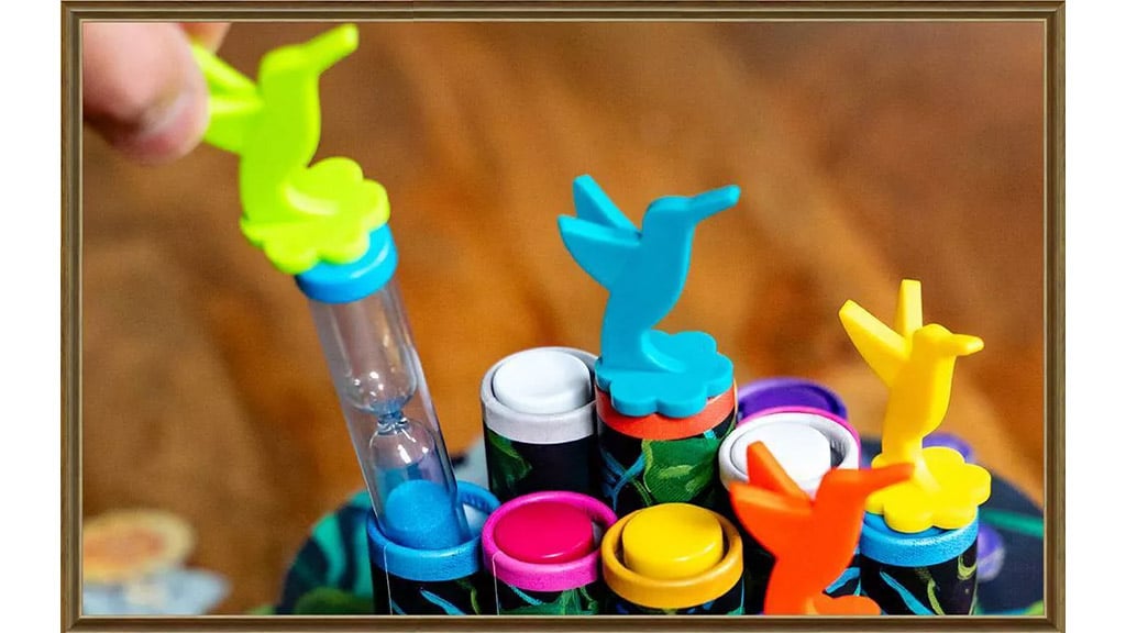 Ez a színes társasjáték apró kolibrikké változtatja a játékosokat, akik egy gyönyörű virágoskertben keresik a nektárt. Amikor a gyerekek egy virágra érkeznek, megnézik az elrejtett homokórát alatta, hogy kiderüljön, készen áll-e már a nektár. Minél tovább vársz, annál nagyobb jutalmat kapsz, de ha túl korán ellenőrzöd, elveszíthetsz egy értékes lehetőséget. A játék izgalmas döntési helyzeteket teremt, miközben fejleszti a türelmet és a stratégiai gondolkodást. A Blue Orange Games által készített játék nemcsak szórakoztató, hanem gyönyörűen illusztrált is, így minden korosztály számára élvezetes élményt nyújt.