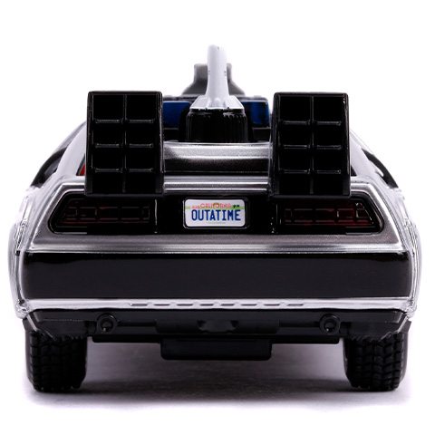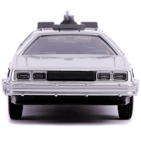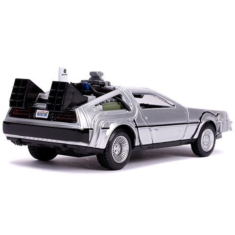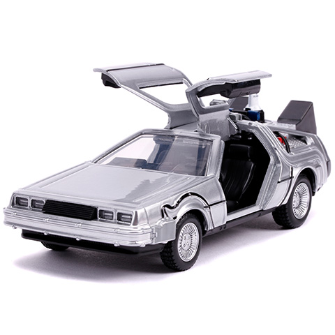 A DeLorean DMC–12 autó alighanem örökre összeforrt a Vissza a jövőbe filmekkel, hiszen ebből a kocsiból csinált a Doki egy időgépet. Ez a modell a második filmben volt látható, így a kocsi erőforrását már nem csak plutóniummal lehet üzemeltetni, és természetesen képes a repülésre, így nincs szüksége utakra. A Simba Toys 1/32 méretarányú járgánya a legapróbb részletekig megegyezik a filmben látható autóval, amit a nyitható ajtók még izgalmasabbá teszik, így játékra épp olyan szuper választás, mint a film rajongók számára, hogy a polcra feltegyenek egy ilyen ikonikus modellt.