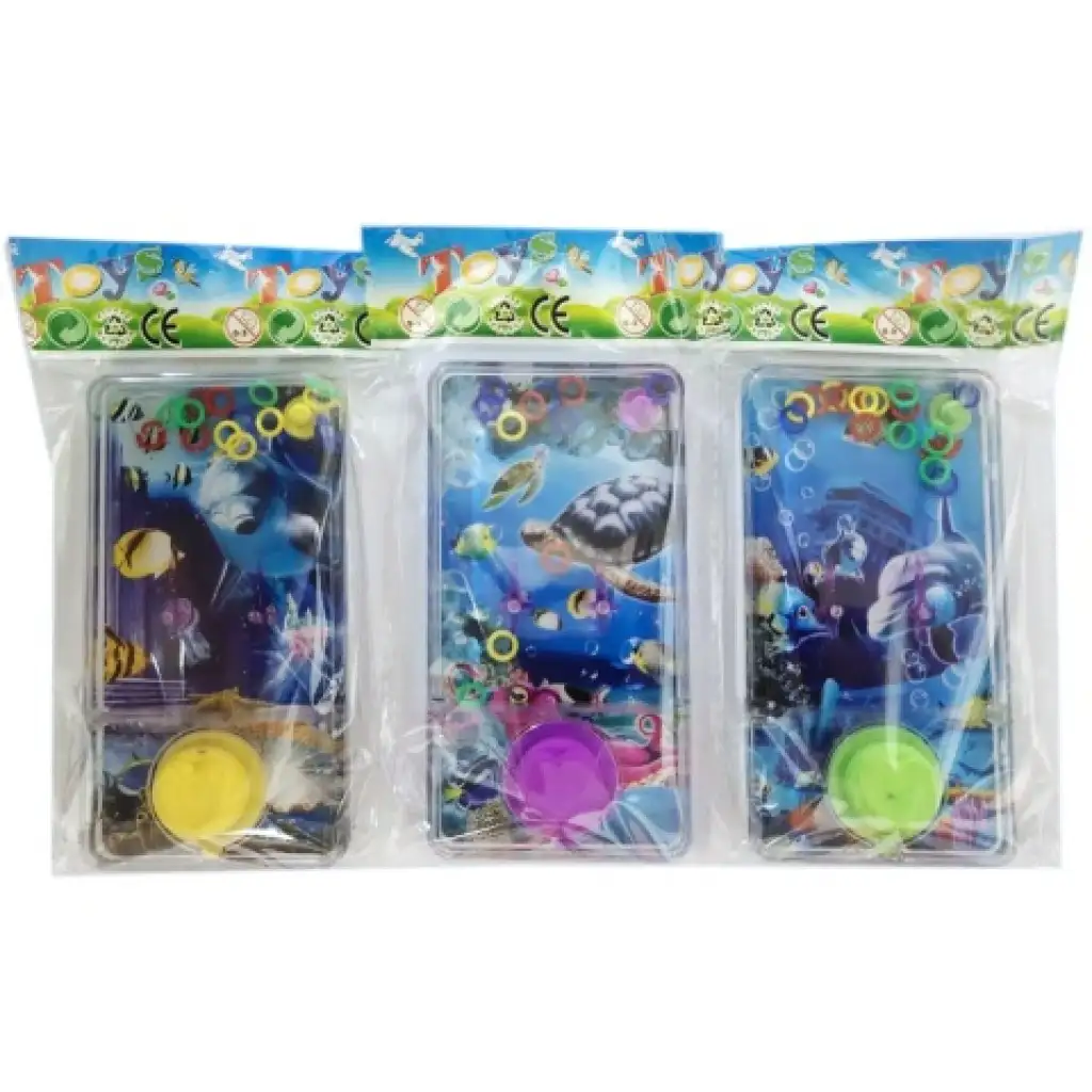 Egy igazi klasszikus ügyességi játékot mutatunk be, mely nem csak gyerekeknek, de felnőtteknek is biztosan elnyeri majd a tetszését. A Vízalati világok mintáival dekorált vizes játék használata egyszerű, ám mégis izgalmas szórakozást nyújt majd. Az alul található nagy gomb nyomogatásával tudjuk mozgásba hozni a játék belsejében található vízet, melynek örvényei így elkezdik majd a kis karikákat felfele mozgatni. A cél az, hogy a lefelé süllyedő karikák mindegyikét beleakasszuk egy-egy oszlopba, melyek középen találhatóak. A játék több változatban érhető el, a feltüntetett ár egy változatra értendő!