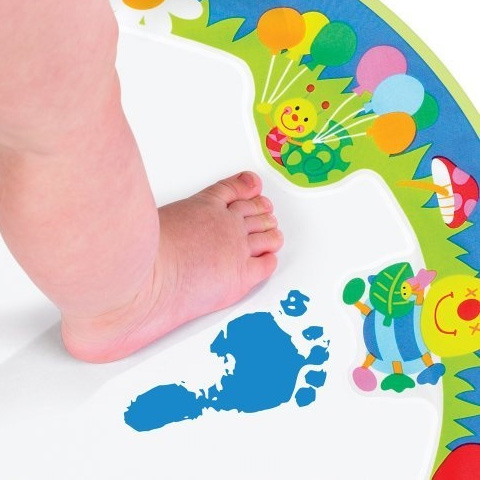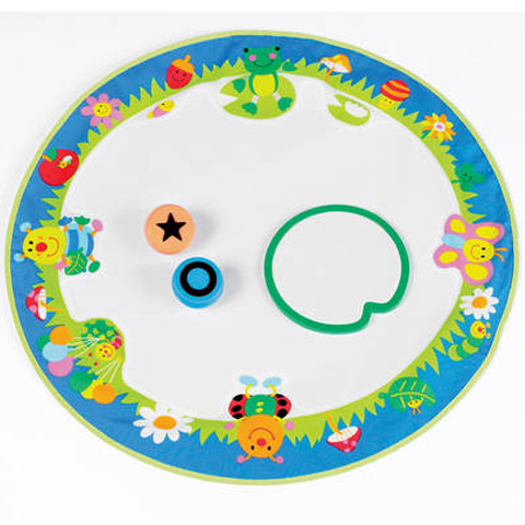 Ezzel a szuper vizes festőszőnyeggel garantáltan nem nem lesz maszatos a padló és a falak sem, hiszen használatához csupán vízre lesz szükség! A Vizes nyomdázó szőnyeg különleges felülettel ellátott, mely a vízzel való érintkezéskor színeződik el. A kicsik így a tenyér lenyomatukat vagy a lábnyomukat is a szőnyegen hagyhatják, de a kör és csillag nyomdázókkal más alakzatokat is létrehozhatnak.
