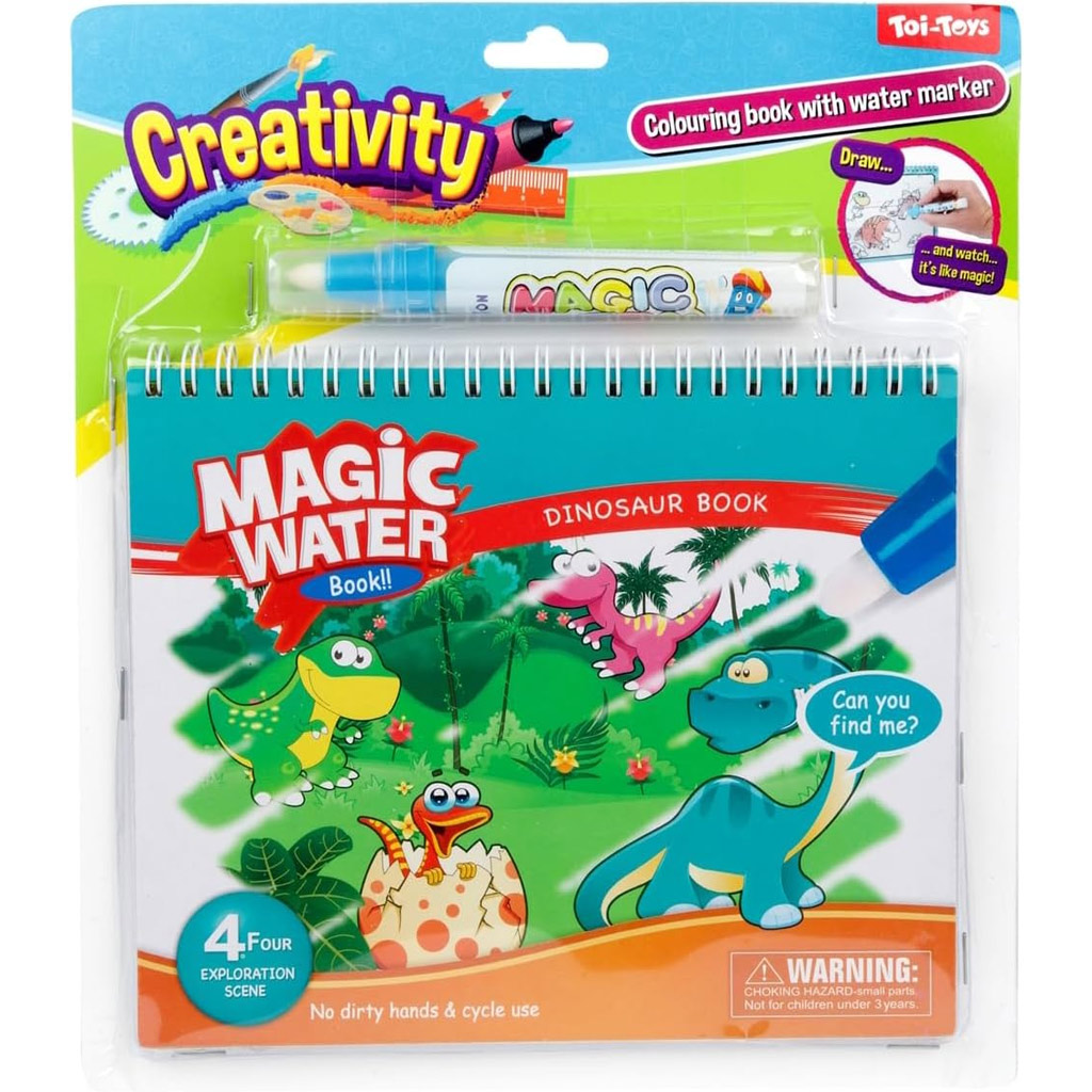 Keltsd életre a dínók világát egy csepp vízzel! Ez a vízzel színezhető foglalkoztató füzet – Dinók kalandja tökéletes választás, ha szeretnél olyan elfoglaltságot adni gyermekednek, ami egyszerre szórakoztató, fejlesztő és rendkívül praktikus. A varázslat itt szó szerint megtörténik: a mellékelt víztartályos tollal való érintés hatására a fekete-fehér oldalak színes, élő dínós jelenetekké változnak. A színezés során nem kell attól tartanod, hogy festék vagy filctoll nyomot hagy a bútorokon vagy ruhákon – csak vízre van szükség, így a játék teljesen koszmentes és újrahasználható.